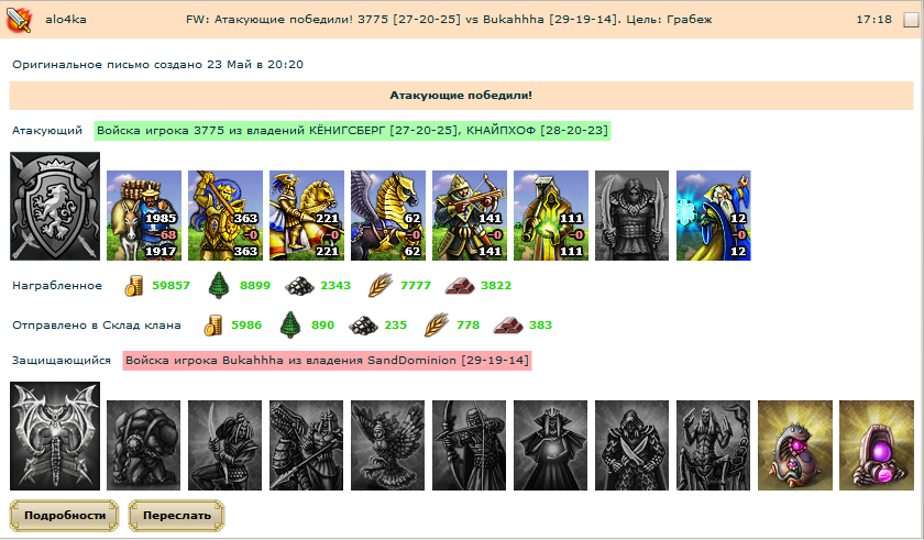 фи... как пошло... перед все проектом мерятся..., ну чем вы там пытались..., ну надо же знать меру и уметь хотябы, если не признавать свои поражения, то научится отступать (ну типа в тактически-стратегических целях) и вовремя "закрывать рот". Вы просили факты - вам их предоставили, но вы опять свое " я, не я, и лошадь не моя". Да не вопрос! и у вас бывали удачные атаки, мне вон два раза уже паселки снесли в одном городе, и я не собираюсь считать сколько вы там потратили кого и сколько мне надо ресов чтоб их отстроить, все движение, чтоб мхом не порасти. Ну полегчало вам... и хорошо... И вообще развлекайтесь господа, это игра, картинка, вы почему такие нервные то?!! Прям на каждое слово кидаетесь!!! жуть... проще надо быть... и будет вам счастье! Удачи и в реале и виртуале!