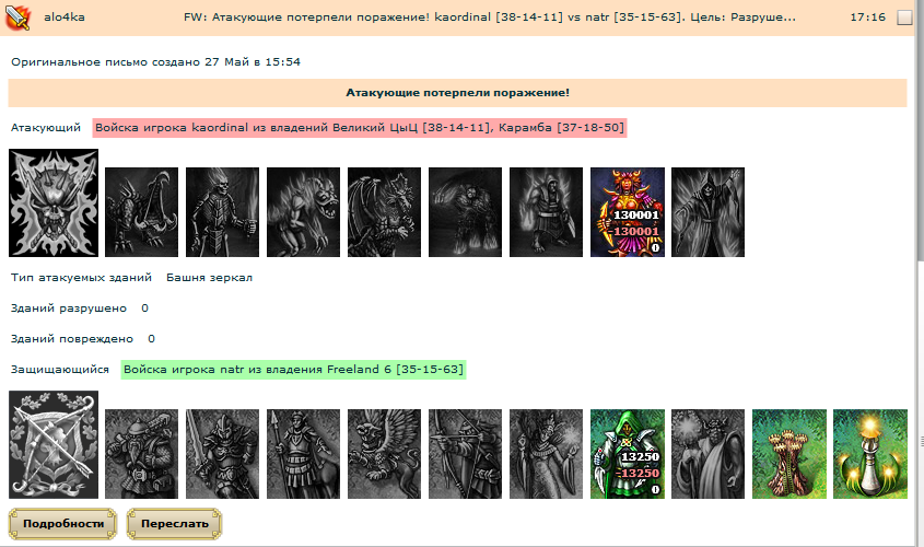 фи... как пошло... перед все проектом мерятся..., ну чем вы там пытались..., ну надо же знать меру и уметь хотябы, если не признавать свои поражения, то научится отступать (ну типа в тактически-стратегических целях) и вовремя "закрывать рот". Вы просили факты - вам их предоставили, но вы опять свое " я, не я, и лошадь не моя". Да не вопрос! и у вас бывали удачные атаки, мне вон два раза уже паселки снесли в одном городе, и я не собираюсь считать сколько вы там потратили кого и сколько мне надо ресов чтоб их отстроить, все движение, чтоб мхом не порасти. Ну полегчало вам... и хорошо... И вообще развлекайтесь господа, это игра, картинка, вы почему такие нервные то?!! Прям на каждое слово кидаетесь!!! жуть... проще надо быть... и будет вам счастье! Удачи и в реале и виртуале!