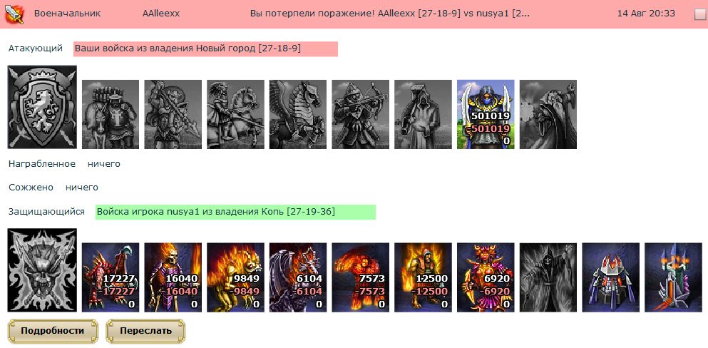 фи... как пошло... перед все проектом мерятся..., ну чем вы там пытались..., ну надо же знать меру и уметь хотябы, если не признавать свои поражения, то научится отступать (ну типа в тактически-стратегических целях) и вовремя "закрывать рот". Вы просили факты - вам их предоставили, но вы опять свое " я, не я, и лошадь не моя". Да не вопрос! и у вас бывали удачные атаки, мне вон два раза уже паселки снесли в одном городе, и я не собираюсь считать сколько вы там потратили кого и сколько мне надо ресов чтоб их отстроить, все движение, чтоб мхом не порасти. Ну полегчало вам... и хорошо... И вообще развлекайтесь господа, это игра, картинка, вы почему такие нервные то?!! Прям на каждое слово кидаетесь!!! жуть... проще надо быть... и будет вам счастье! Удачи и в реале и виртуале!