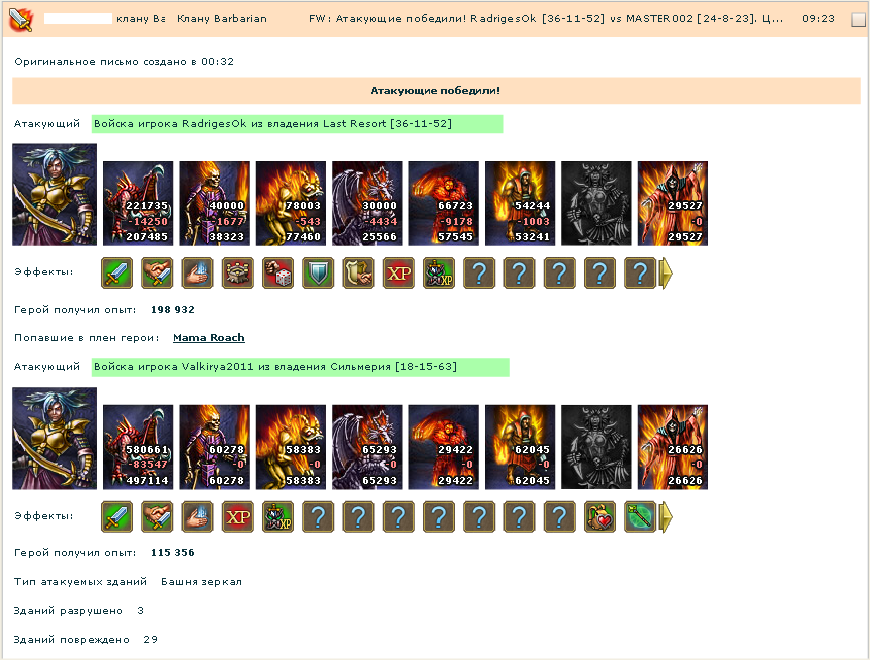 может быть количество наймов не то что бы уменьшилось, а еще и увеличилось:)Mosyya писал(а):последний лог боя явно не верный, не верю чтоб в атаке не умер не один найм....