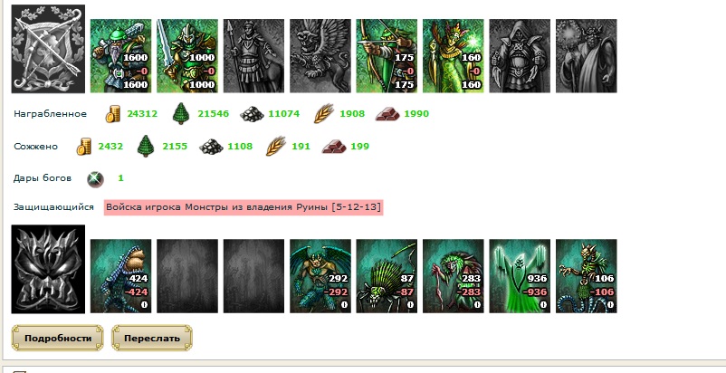 kundili писал(а): 3500 носильщиков хватит за глаза, чтобы унести все ресурсы (зачем же лекарей перенапрягать). Насчет 600 крылатых - Вы наверное не разобрался с механикой игры (советую почитать про урон преследователей). Один лучник в бою преследователя убьет одного летающего! Вы опять же перенапрягаете лекарей.