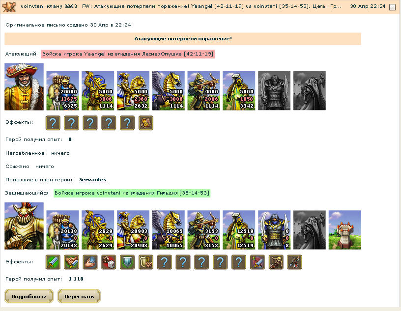 администрация признала что ловушка не сработала, там должны были все остаться у меня, в ноль) но убивать армии сказали это невозможно :)MasterVor писал(а):У тебя там вроде ловушка была. Да и у тебя пришлось бы армии убрать, а вот сколько-неясно. Может потому и не снулили. А тут результат кардинально противоположный от ожидаемого-поражение вместо победы,разрушенные здания(которые чижиков стоят),посёлки занятые мультом. Совсем плохо получаетсяimas777 писал(а):Мурада и воинавтени не обнулили при похожем баге и исходе боя, и янгела тоже не обнулят)Хотя скорее всего действительно всё оставят как есть-администрация всегда права)