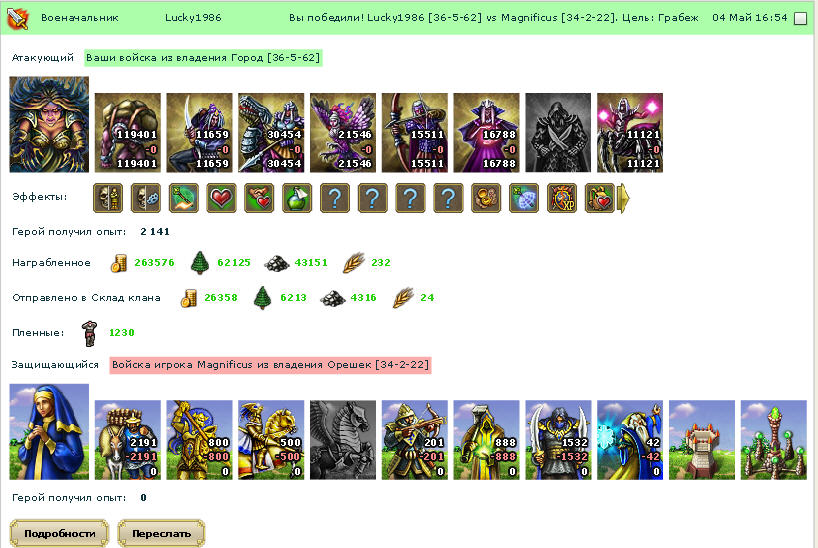 Мурада и воинавтени не обнулили при похожем баге и исходе боя, и янгела тоже не обнулят)MasterVor писал(а):Да уж-смотрел,смотрел этот бой и никак не мог понять сути антимагии. Если не обнулят армию Яангел-будет величайшая несправедливость. Ну а Лаки мои поздравленияНе подпускай сынишку к игрушке,как подрастёт