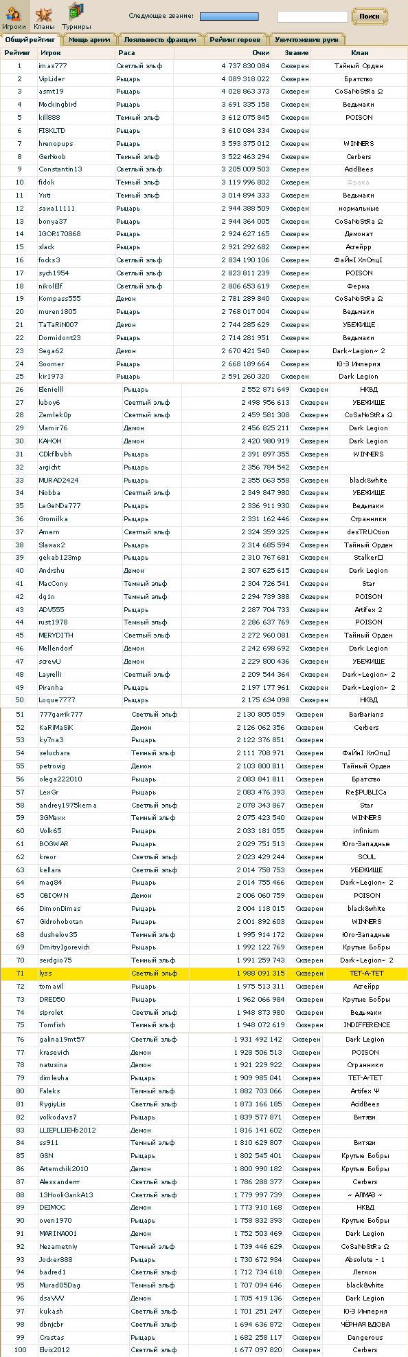 кланы: +3 клана в топ-50
