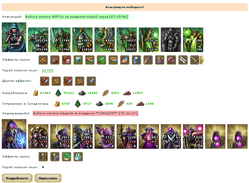 немного не повезло что войска по минимуму ударили... так бы результат был бы поприятней.. но учитывая что перемещал войска на глаз( не было времени на кальке прикидывать..считал уже после перемещения), то вполне неплохо.. мои потери с учетом воскреса составили почти 300к луков..shtogr писал(а):топ-3 по МА, в один миг стал топ-77 по МА... у атакующего свиток "Осторожность в нападении"