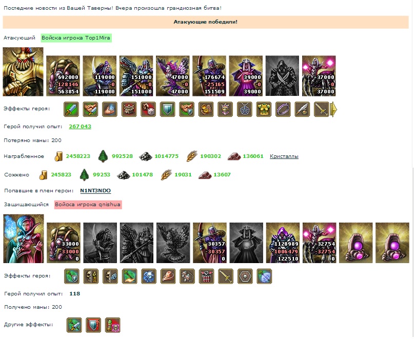 Подняли они воскрешением по 2кк найма, квестами, артами, свитками разогнали атаку. Спрятали под маскировкой армии, но спалились перед выходом (мы поймали момент, когда герои с раздутием были в подвале).