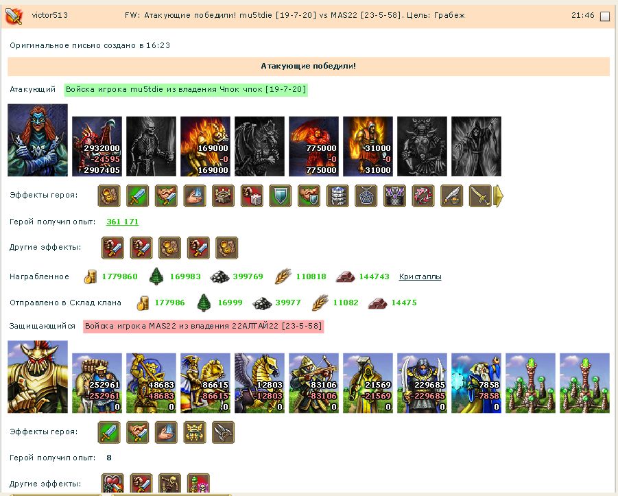 да причем все эти успехи достигнуты благодаря глюку в платном калькуляторе, который и до сих пор не устранен, идет переписка с админами, если бы не это землекопу и свефу сильно бы не повезло... то есть в ноль.. абсолютный!Lucky1986 писал(а):Интересный бой...Несмотря на то, что де-юре землекоп и свеф проиграли, де-факто тут минимум ничья, тем более, что землекоп сохранил вполне себе боеспособную основу и набил неслабое количество фрака, а у защиты остались огрызки основы.