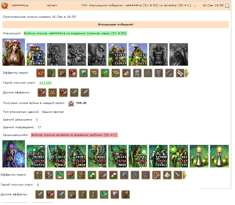 Подняли они воскрешением по 2кк найма, квестами, артами, свитками разогнали атаку. Спрятали под маскировкой армии, но спалились перед выходом (мы поймали момент, когда герои с раздутием были в подвале).