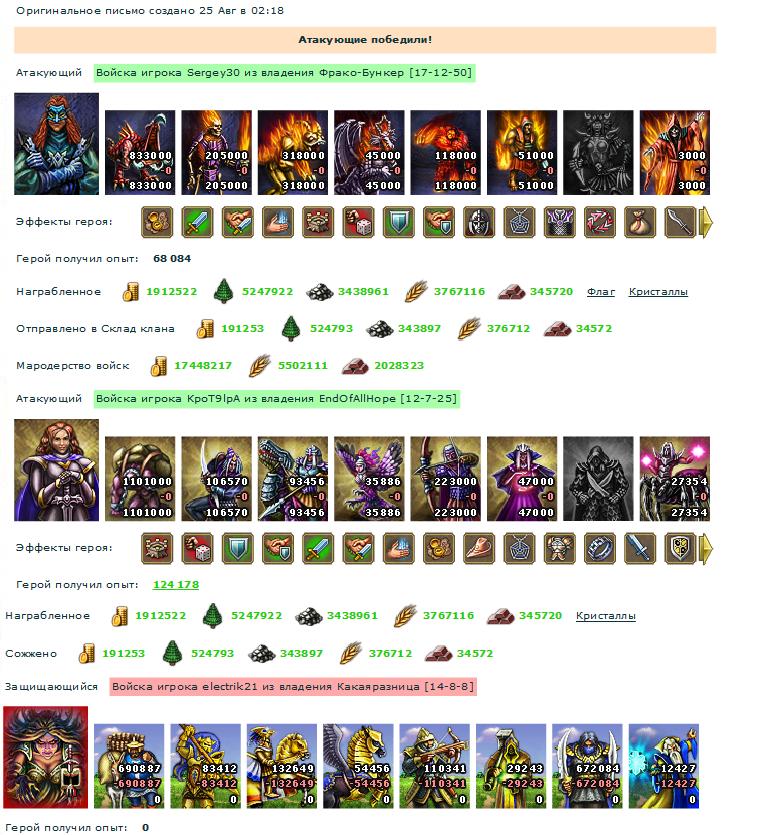 Подняли они воскрешением по 2кк найма, квестами, артами, свитками разогнали атаку. Спрятали под маскировкой армии, но спалились перед выходом (мы поймали момент, когда герои с раздутием были в подвале).