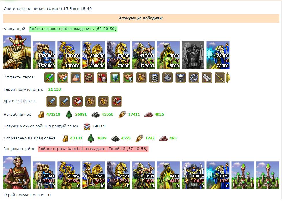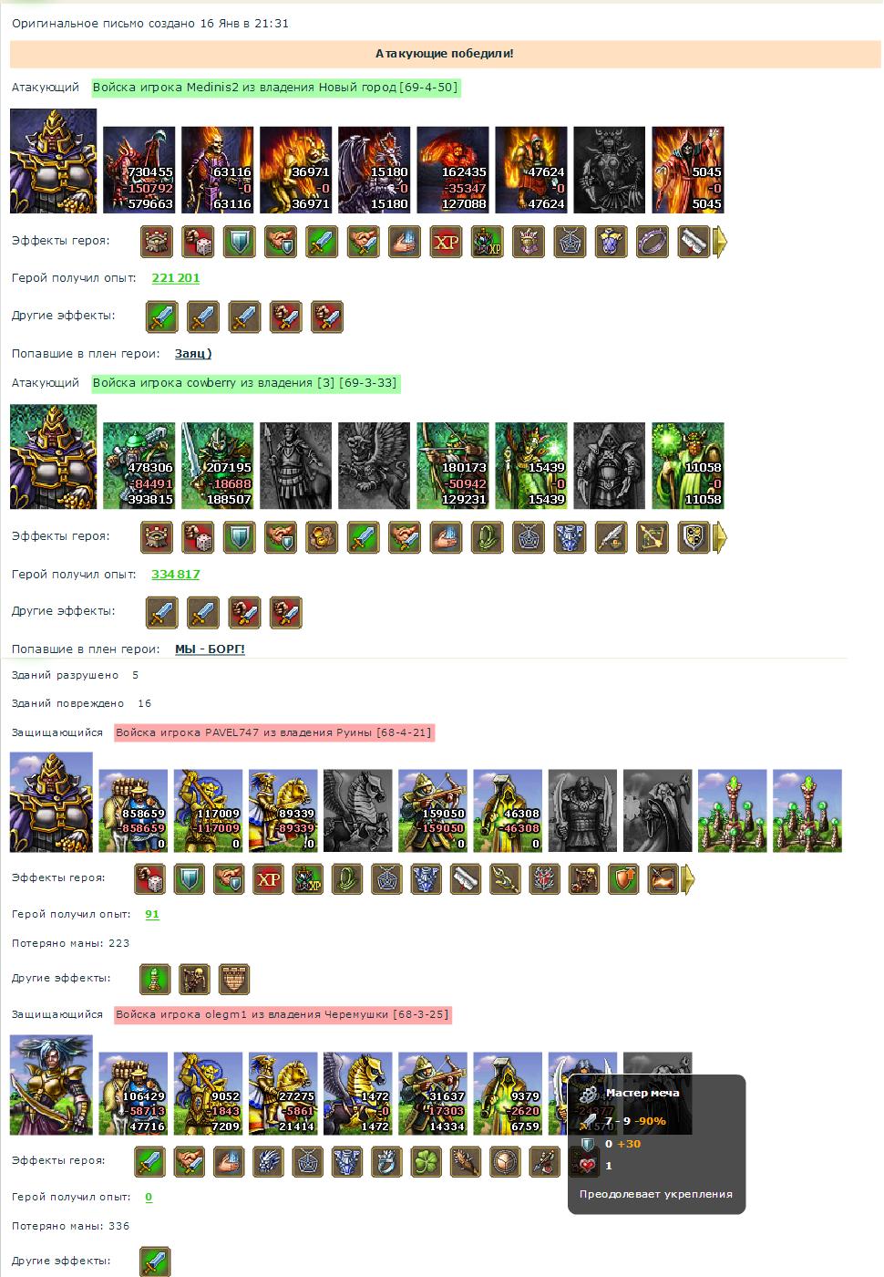 немного не повезло что войска по минимуму ударили... так бы результат был бы поприятней.. но учитывая что перемещал войска на глаз( не было времени на кальке прикидывать..считал уже после перемещения), то вполне неплохо.. мои потери с учетом воскреса составили почти 300к луков..shtogr писал(а):топ-3 по МА, в один миг стал топ-77 по МА... у атакующего свиток "Осторожность в нападении"