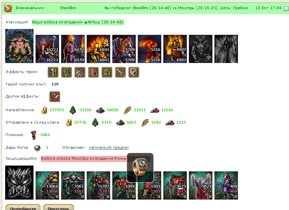отчет не сохранился, стратегом на 4* руине рубаху горца выбил