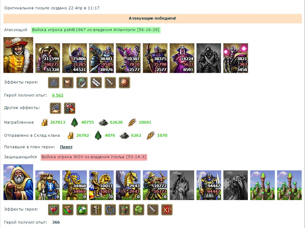 И про нормально сыграл, если я так говорю, значит так и есть, или ты привык гордится тем, что сделали другие?Я слил тебе зама, ты был просто нулем и смотрел, как я это делал, и потом ломал тебе посы, своей "мегатоп" армией, вот факты, а что сделал ты мне в ответ? :) А что слился в атаке, во-первых не в ноль, во-вторых 100к луков, о даа, просто невосполнимый слив :) Причем это восстановить, ну недели наверно две точно, при тех возможностях, что были у акка, причем с технической стороны я сделал там все правильно, тупо не хватило урона, как бы, на кучу мяса :)