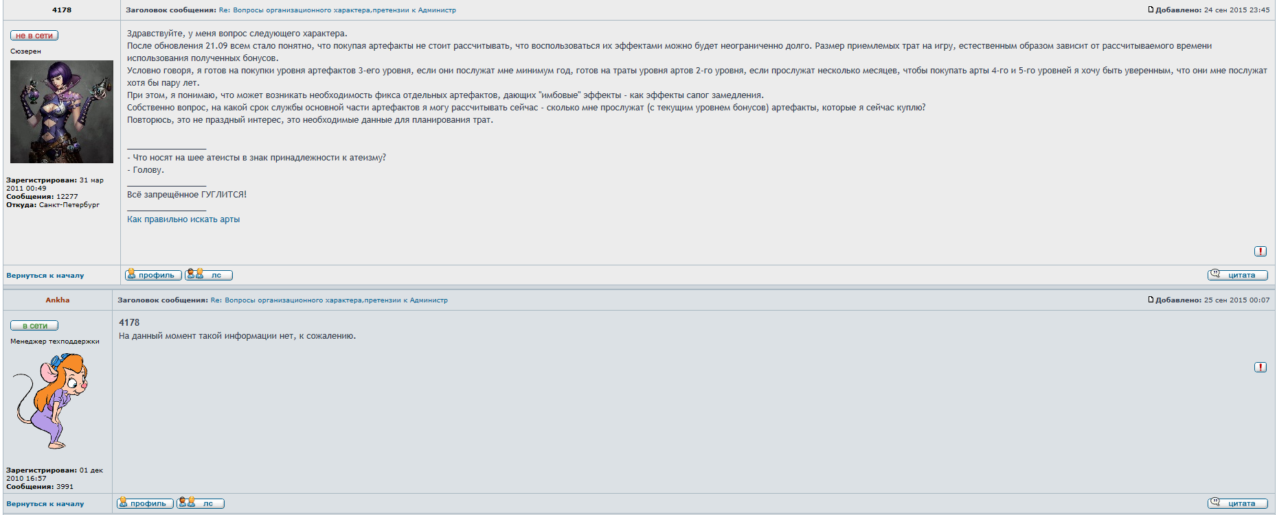 А кто вернет нам разницу в чижах за которые мы покупали артефакты Допустим я когда брал артефакты 4-5 ур надеялся не на то что щас сделали. так что могу половину артов вернуть назад пользуйтесь сами