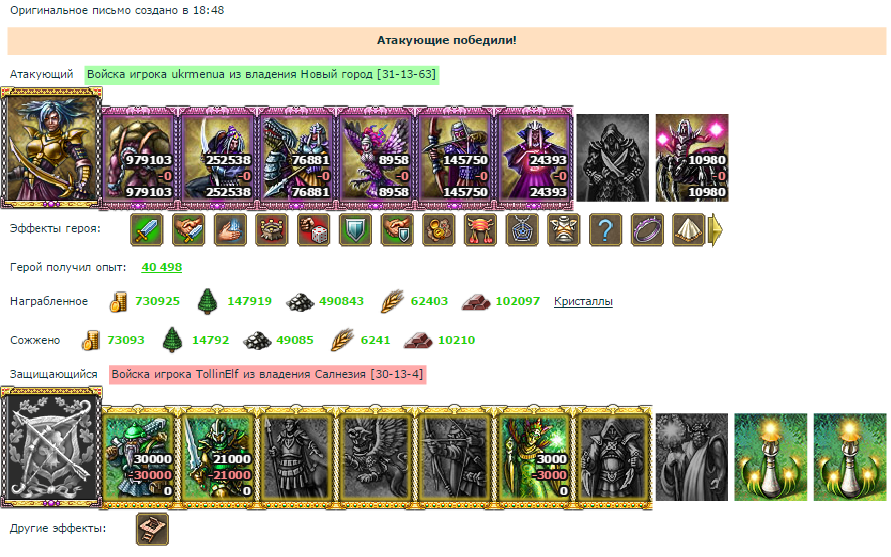 Для наемника при вычислении Attacker_atk и Defender_atk удваивается. Какой бы расой вы не играли – в расчете будут использованы значения рыцарского наемника.