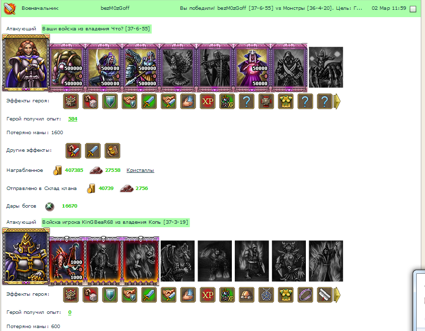 Боковым зрением bezM0zGoff увидел, как один из пехотинцев, занимающихся поиском, вышел из руин и что-то шепнул капитану, который сразу последовал к королю, заметно повеселев. Богатство полученное из поверженной Архируины короли раздели между собой и опьяненные победой направились во владения bezM0zGoff, праздновать уже два замечательных события.
