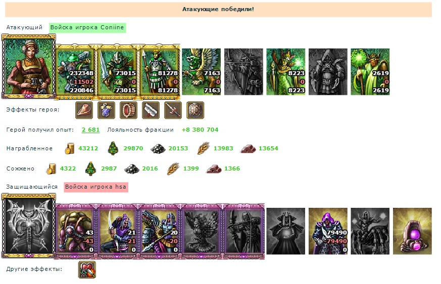 Атакующий унес опыт фрак и ресы, чутка потерь....защитник сильно не пострадал...)