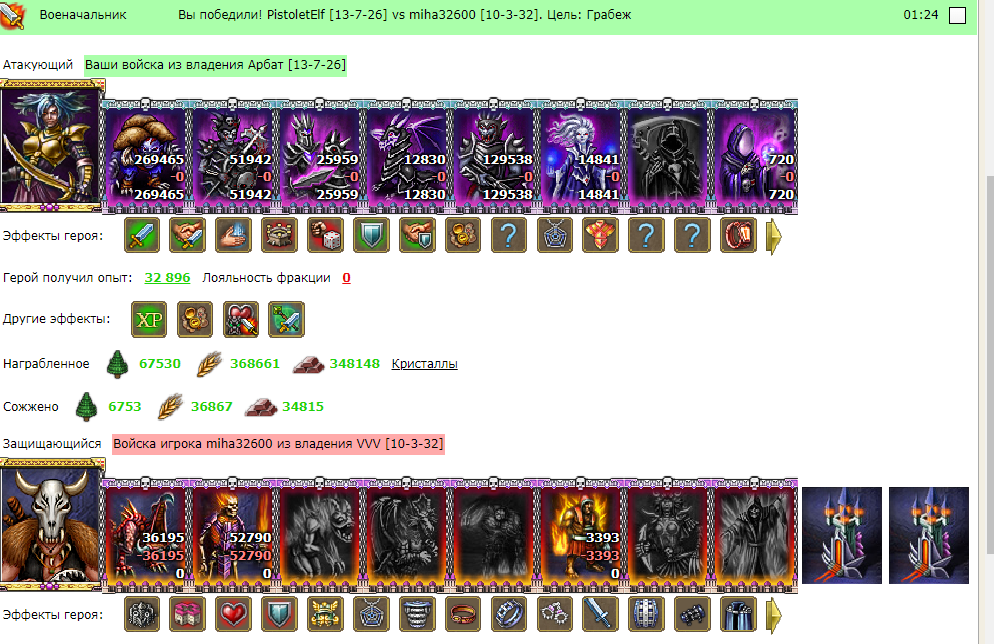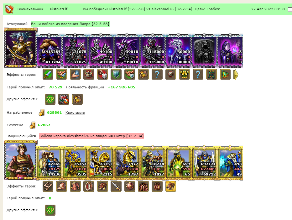 Если серьезно то мне в этом бое интересно узнать совсем не как принимать деф - интересно как уверенно придти такими атаками с интервалом 20 мин и не быть встреченной условными 200к наймами. В общем-то игра с сапогами бога по принципу - отправлять везде где не пишет "Ворота города цели закрыты" имеет свои последствия. Собственно При атаке вражеского владения герой с армией не вступает в бой , если шанс проигрыша 100% - дальше можно полюбоваться топовым скиллом желающего помериться логами со всеми Пистолета и посмотреть на то каким разным бывает зеленый лог