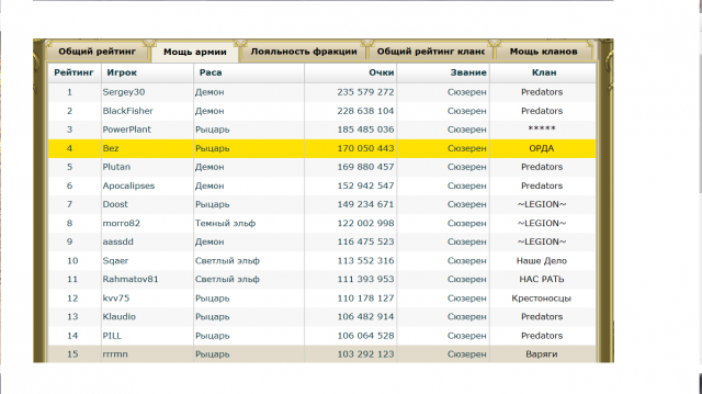 Обратите внимание Базилики уже на 1-м листе рейта мощи нет.