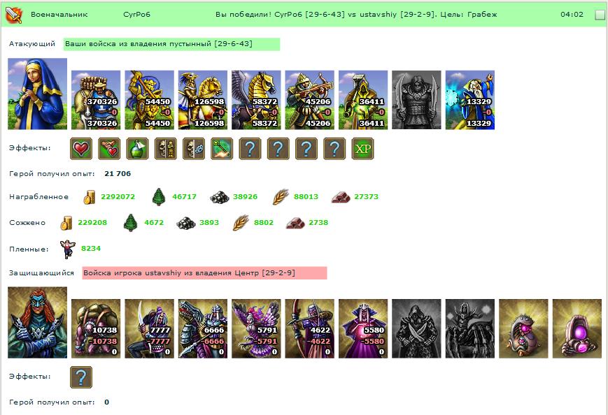 бред ваще от куда стока боев, лана алексаб видно че новая звезда бакара появилась, но откуда стока фр и опыта герою для девятой роты не могу понять, хз либо кто то докладывает четко о походах, либо акки выращиваются для прокачки, ребят поделитесь секретом, я каж день шпионю всех никого не вижу ваще, либо храм либо ваще кто то союз предлогает после шпиков, бред полный по мне так, стока армий так тупо сливаются, я с лета игры слился тока разок и то через свиток невидимости, не может быть таково что народ реально может так отдавать армии на прокачку героев??????, Блин и больше всего бесит то что даж я знаю кто уходит из игры и просто отдает армию на прокачку..... нах эти бои выкладывать именно в достижения девятой роты, полный пипец, вы выставляйте именно подвиги а не ВЦ