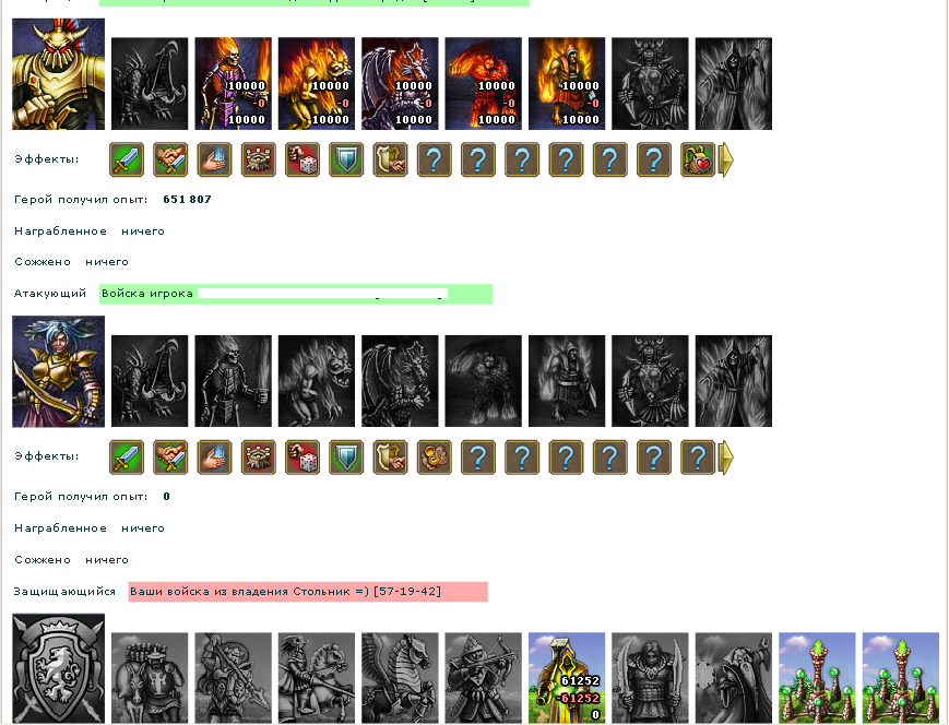 может быть количество наймов не то что бы уменьшилось, а еще и увеличилось:)Mosyya писал(а):последний лог боя явно не верный, не верю чтоб в атаке не умер не один найм....