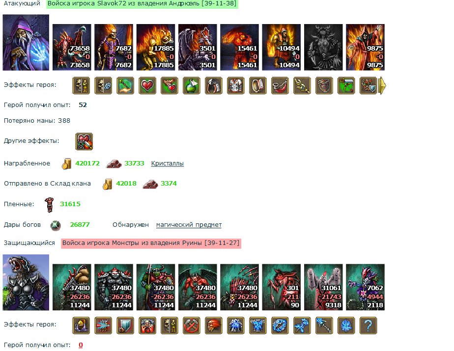 При подходе к сокровищнице монстров была разработана тактика как вывести часть войск неприятеля из боя и тут помог еще один древний свиток врученный от чародеев.