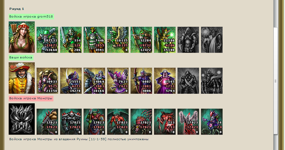 Посмотрев на свою небольшую армию взвесив все за и против на симуляторе боя Я понял что армия моего героя еще слишком слаба чтоб принять бой написав союзному владыке grom518. Он откликнулся ,не задумываясь , не думая о потерях было принято решение выходить в поход на подовления крупной групировки монстров пошаривши по карманам героя были найдены хорошие свитки прочитавши их наши армии стали сильней в маем гардеробе я одел на себя модную рубашку , и шапку взял меч и и щит всякие кольца и цепь с крестом герой выглядил солидно и угражающим. Союзник grom518 одевши советские кеды 4лев смог быстро добежать до места забитой стрелки он также был одет в спортивный костюм от “Эльфийскава рейнджера “ что придовало резкой подвижности всей армии. Мы вышли к руине где собралась группировка монстров дорога до места была быстрой по дороге мы подавляли мелкие групирвки монстров каторые стягивались кместу собрания ).