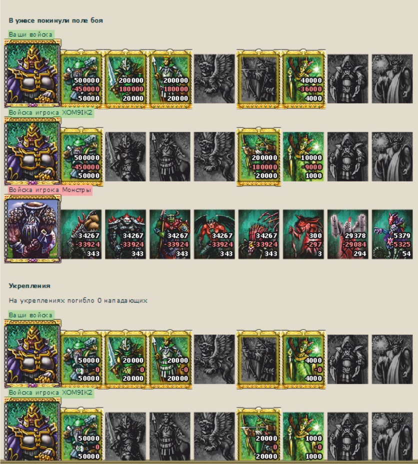 Оставшаяся же армия самоотверженно крушила монстров архируины. На соседнем фланге бились с монстрами союзные войска игрока XOM9IK2. Вскоре бой был закончен.
