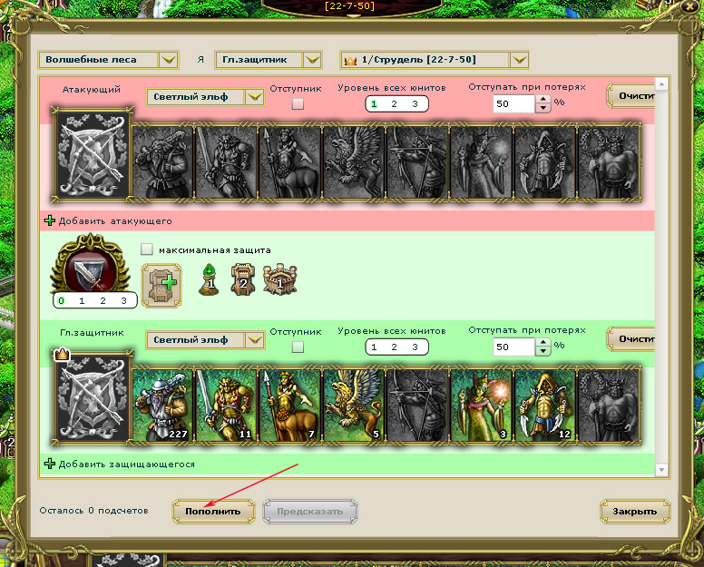 3.При вызове калькулятора из окна миссий, подставляются войска атакующего и его союзников и войска защищающегося игрока: