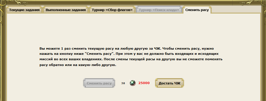 3. Каждый персонаж может единоразово сменить свою текущую расу на любую другую. Для этого нужно открыть Советника и вкладку "Сменить расу".