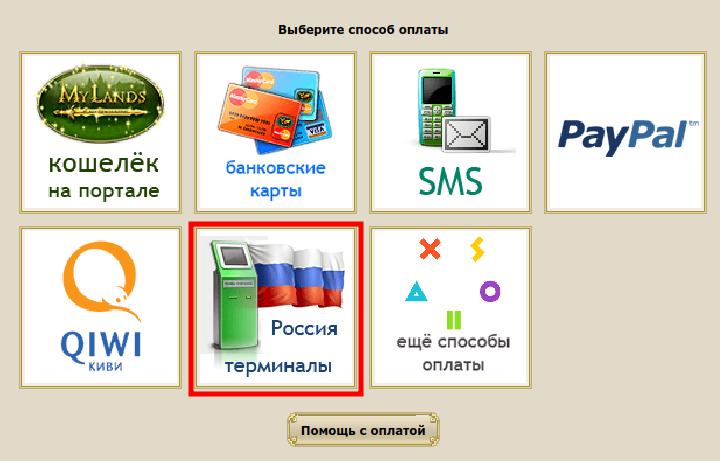 1.Выбираем способ оплаты "Терминалы России".